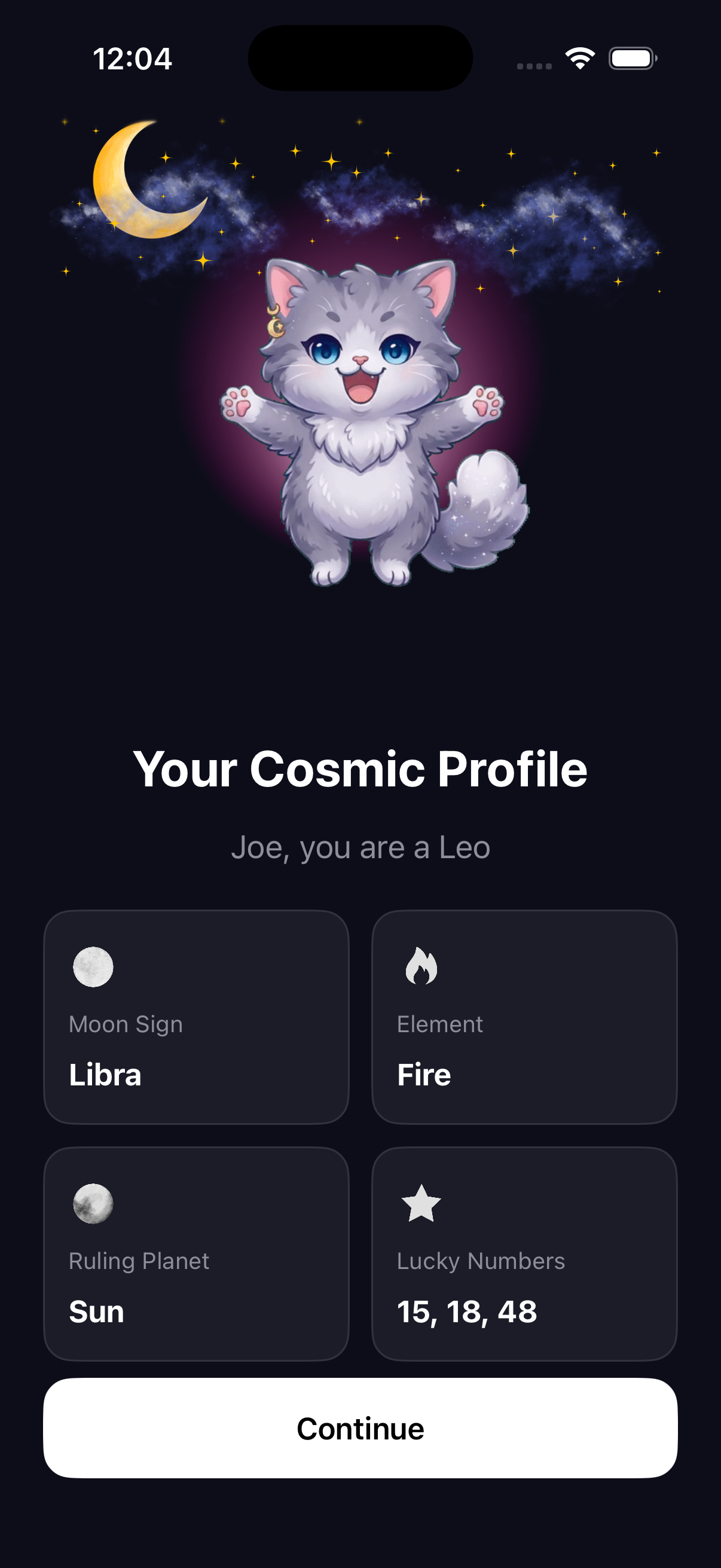 Free to try. No account. No pressure. Just you, your chart, and a fluffy cosmic cat who's really into you.